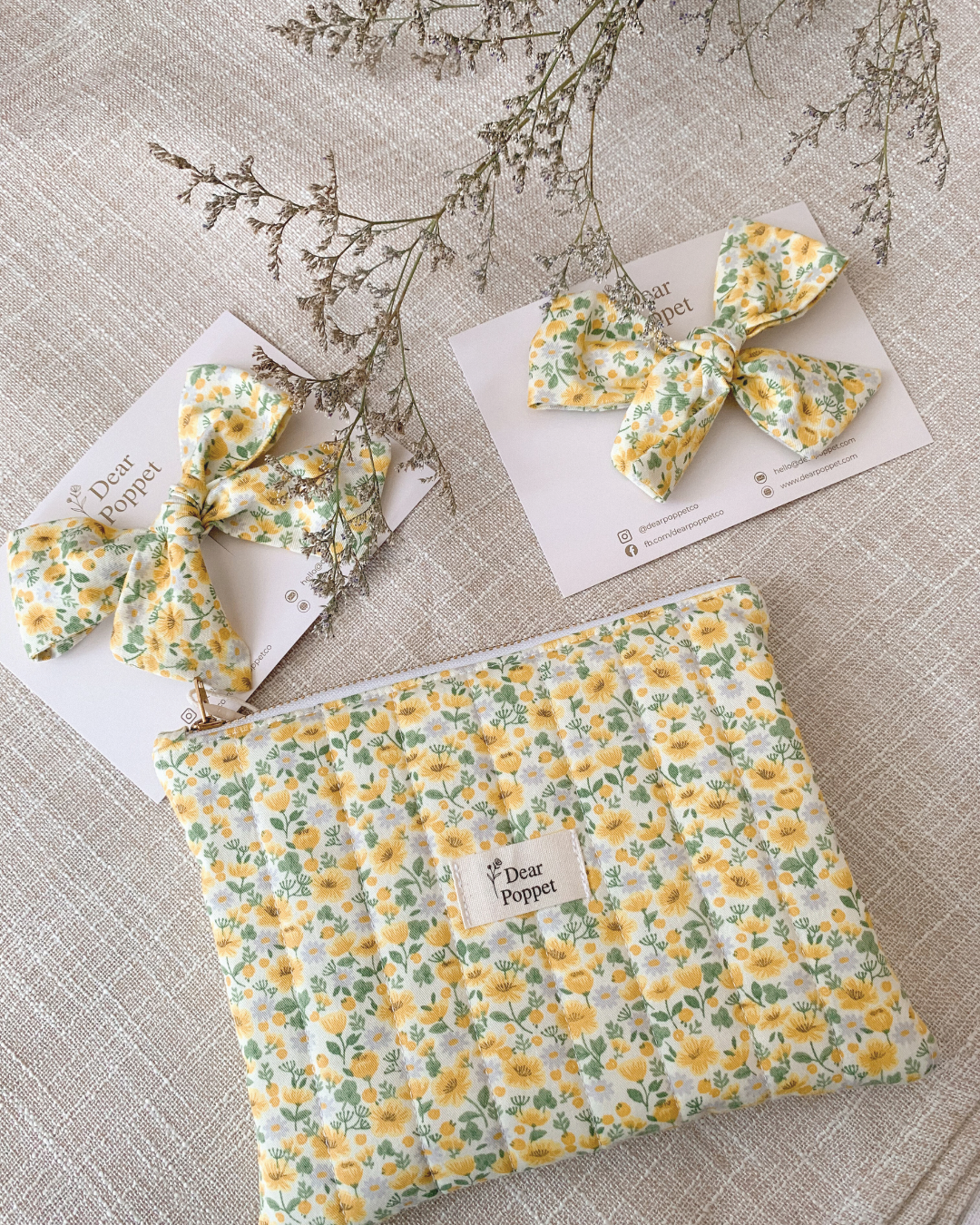 Every Dear Poppet piece is lovingly handmade, which means no two will ever be exactly alike. You may notice small differences in stitching, quilting lines or print placement — these tiny quirks are part of their charm, making your pouch truly one-of-a-kind. We hope you’ll treasure the little story each one carries. 💛
