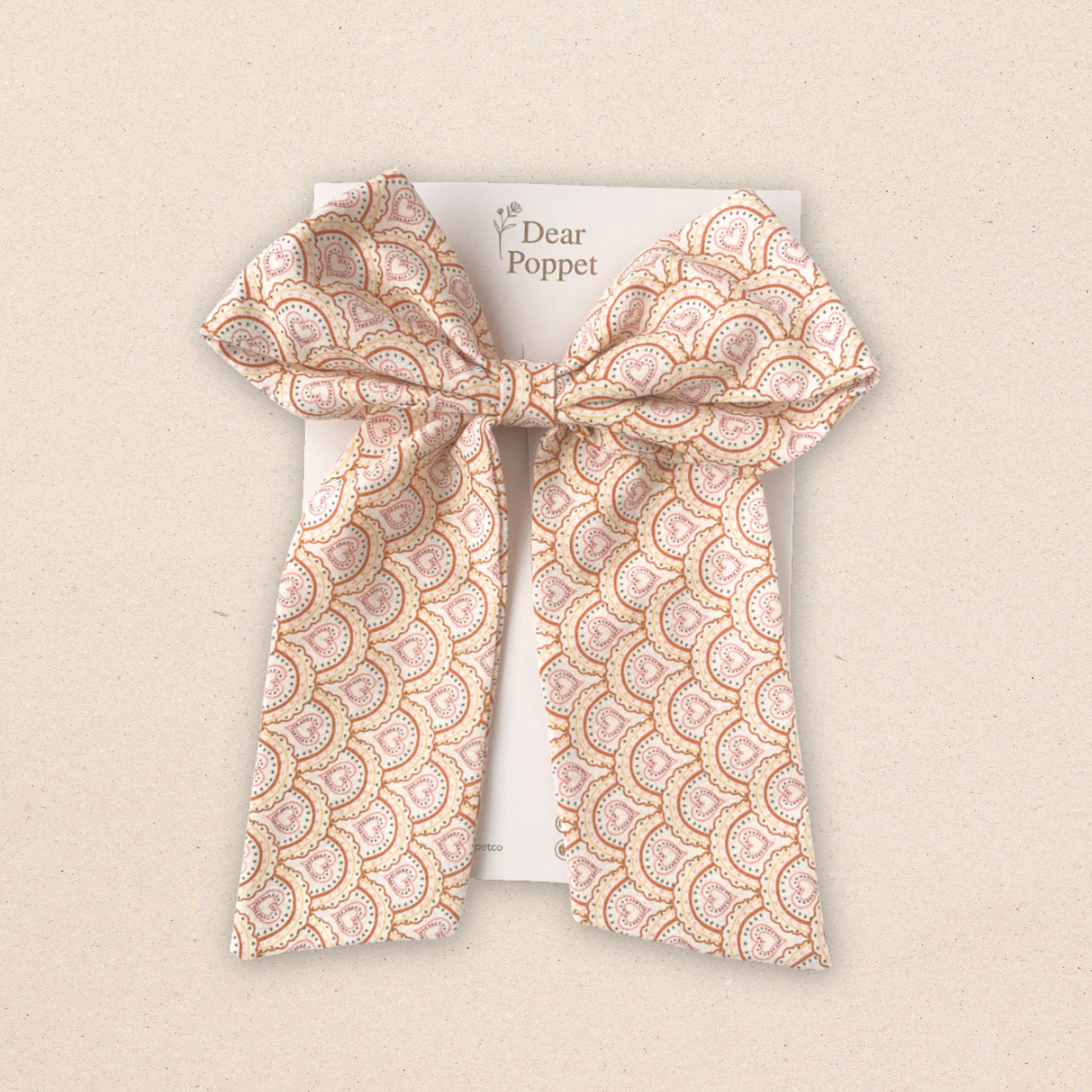 Every Dear Poppet piece is lovingly handmade, which means no two will ever be exactly alike. You may notice small differences in stitching or print placement — these tiny quirks are part of their charm, making your bow truly one-of-a-kind. We hope you’ll treasure the little story each one carries. 💛